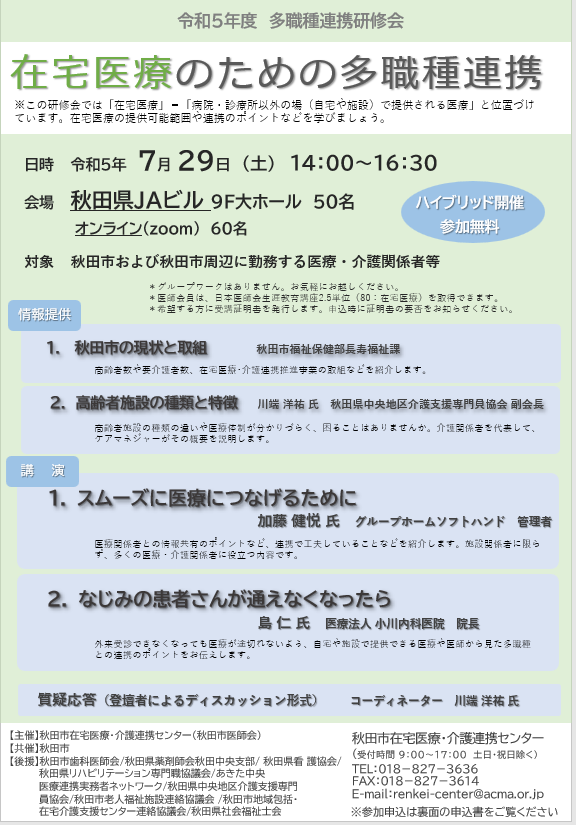 令和7年度第1回秋田市在宅医療・介護連携セミナーを開催します