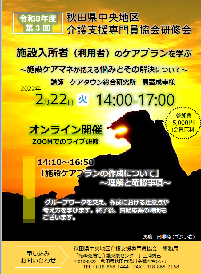 | 令和3年度秋田県中央地区介護支援専門員協会 第3回研修会 |