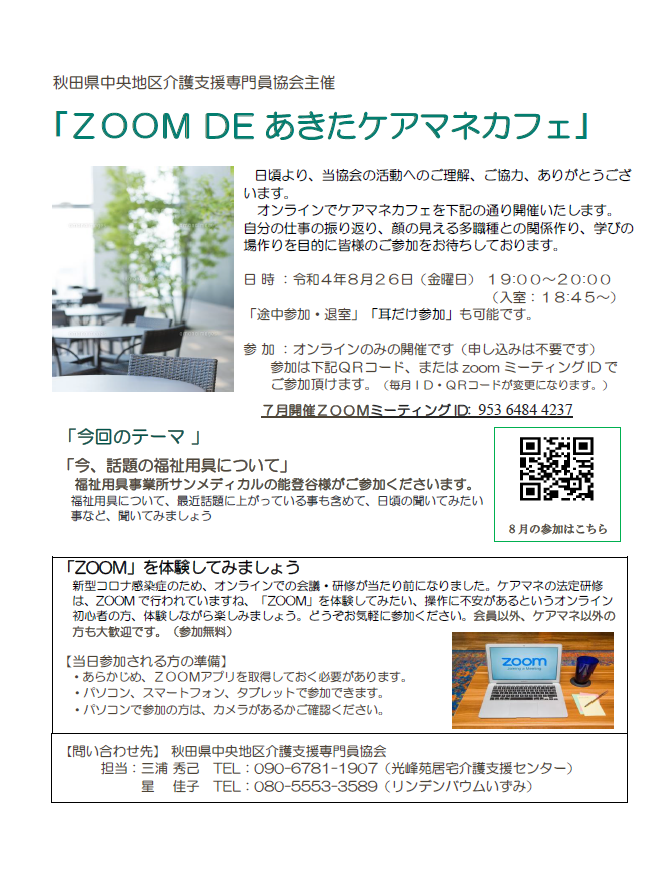 「第33回なんケアの会」開催延期のお知らせ 拝啓 時下ますますご隆盛のこととお慶び申し上げます。 8月5日に予定しておりました「第33回何ケアの会」は、新型コロナウイルスの感染が拡大している状況を考慮し、誠に勝手ながら開催を延期することといたしました。 新しい日程が決まり次第、改めてご案内申し上げる所存でございます。 何とぞご理解のほどよろしくお願い申し上げます。 |