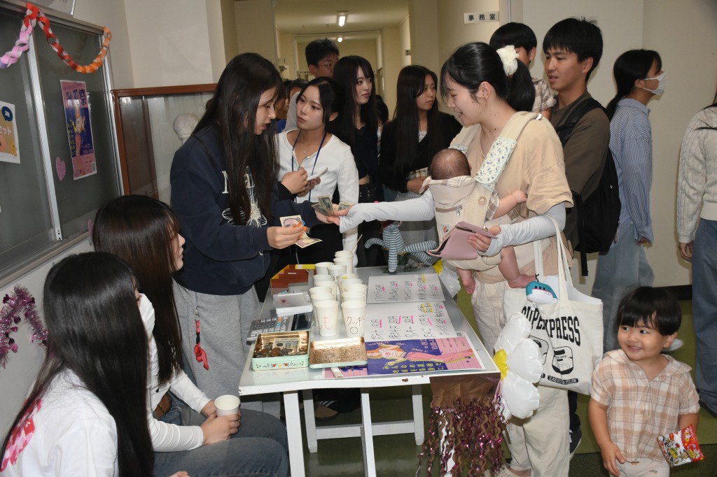 晴天に恵まれた9月27日(土)、「みんなの笑顔で地域を笑顔に」をテーマに学校祭(秋看祭)を開催しました。 この日は午前10時の開始と同時に、模擬店の券売コーナーには大勢の来校者の方々や学生が並び、焼きそばや焼き鳥、ババヘラアイス、フライドポテト、玉コン、フルーツジュースなどの購入券が飛ぶように売れていました。学生達が協力し合いながら“営業”する模擬店のほか、今年から初めてキッチンカーも来校。会場の食の賑わいに一役買っていました。 このほか校内には、オープンキャンパス校内ツアーや血圧測定のコーナー、輪投げやボーリングのコーナーなども設けられ、家族連れも含め訪れた大勢の方々が安くて美味しい食べ物に舌鼓を打ったり、楽しげにゲームに興じたりしていました。 投稿:教職員 事務長 [ 2025/09/27 ]